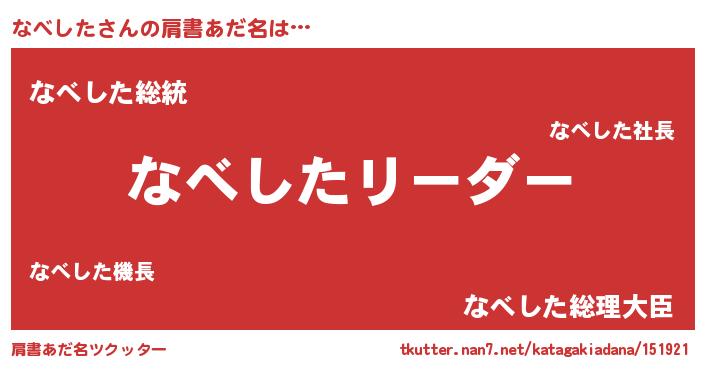 | ポケモン風あだ名 | 『ヒナベシタ』『ナベセウス』 |