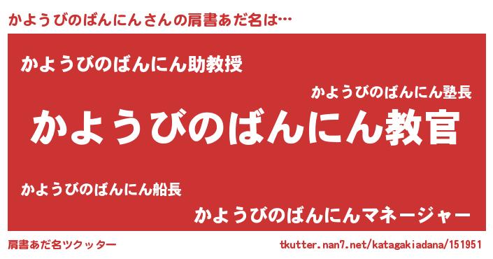 | 欧米人風あだ名 | 『ダレノガレかようびのばんにん』 |