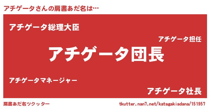 | 意味不明あだ名 | 『とにかく怪しいアチゲータ』 |