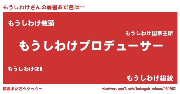 | 意味不明あだ名 | 『永久保存もうしわけ』『自称もうしわけ』 |
