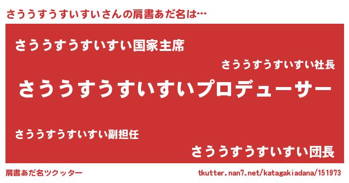 | 男性向けラノベタイトル風あだ名 | 『さううすうすいすいに滅ぼされるだけの簡単なお仕事です』 |