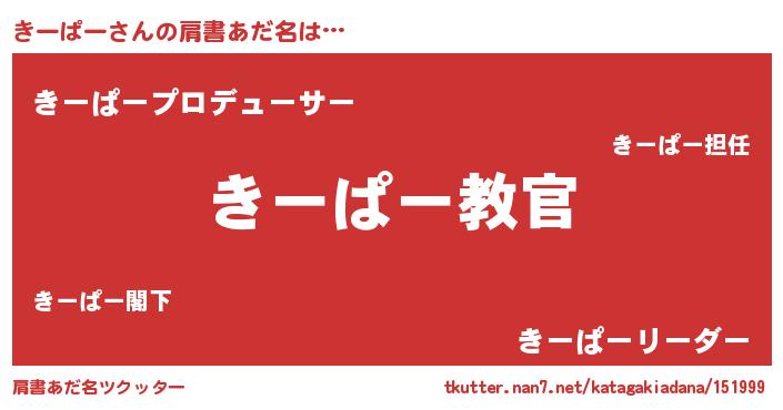 | ヘコむあだ名 | 『きーっぺ』『きーぱー(遠い目)』 |