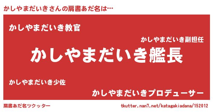 | 意味不明あだ名 | 『住所不定無職かしやまだいき(43歳)』 |