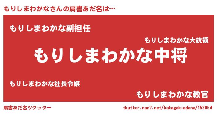 | 男性向けラノベタイトル風あだ名 | 『転生したらもりしまわかなだった件』 |