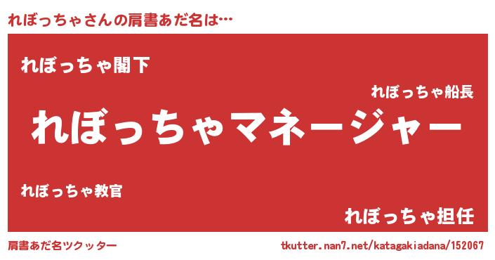 | 男性向けラノベタイトル風あだ名 | 『れぼっちゃに滅ぼされるだけの簡単なお仕事です』 |