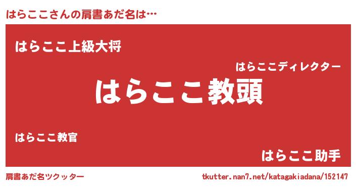 | 男性向けラノベタイトル風あだ名 | 『はらここという概念が存在しない退屈な世界 』 |