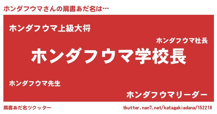 | 男性向けラノベタイトル風あだ名 | 『ノーゲーム・ノーホンダフウマ』 |
