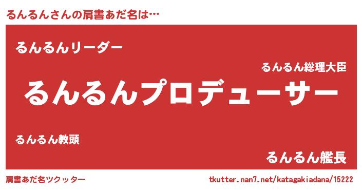 | ヒーロー風カッコイイあだ名 | 『暗黒騎士ルン』『ウルトラるんるんマン』 |