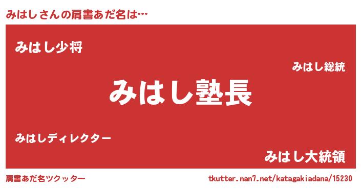 | 女子向けラノベタイトル風あだ名 | 『みはしの卵を拾いまして』『闇のみはし』 |