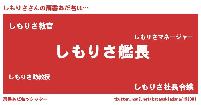 | 意味不明あだ名 | 『住所不定無職しもりさ(39歳)』 |