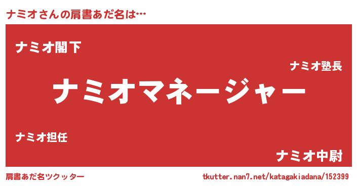 | 男性向けラノベタイトル風あだ名 | 『はたらくナミオさま!』 |