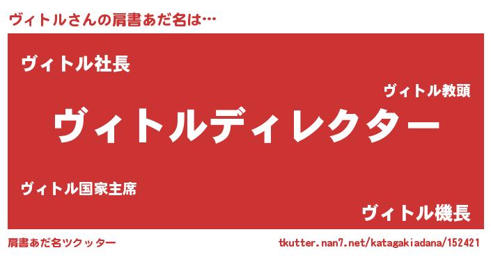 | 男性向けラノベタイトル風あだ名 | 『ヴィトルに滅ぼされるだけの簡単なお仕事です』 |