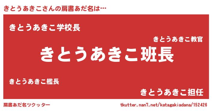 | ポケモン風あだ名 | 『ヒキトウアキコ』『キックウザ』 |