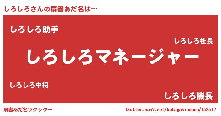 | 男性向けラノベタイトル風あだ名 | 『はたらくしろしろさま!』 |