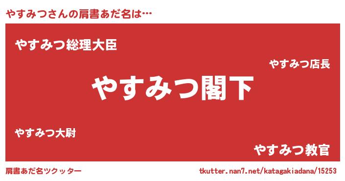 | 男性向けラノベタイトル風あだ名 | 『Re:やすみつから始める異世界生活』 |