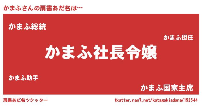 | ヒーロー風カッコイイあだ名 | 『スーパーカマフ』『超時空戦士カマフ』 |