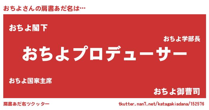 | 欧米人風あだ名 | 『アンジェラ・おちよ』『マイケルおちよ』 |