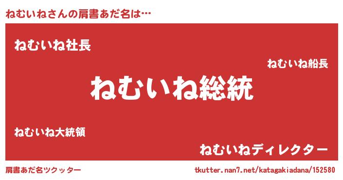 | 意味不明あだ名 | 『自称ねむいね』『ペロリンねむいね』 |