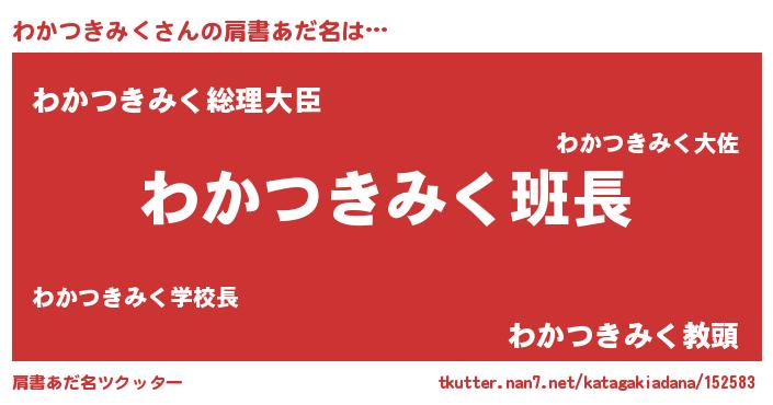 | 女子向けラノベタイトル風あだ名 | 『わかつきみくの卵を拾いまして』 |