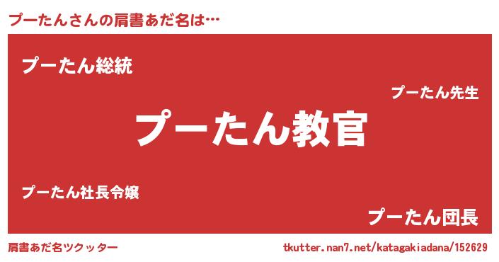 | ヒーロー風カッコイイあだ名 | 『仮面プーダー』『ウルトラ戦士プータン』 |