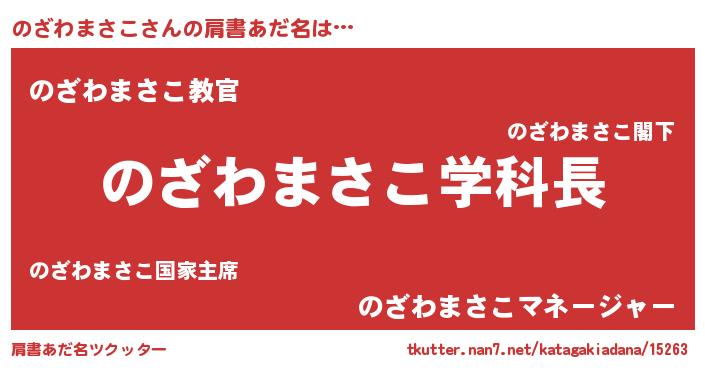 | 男性向けラノベタイトル風あだ名 | 『ノーゲーム・ノーノザワマサコ』 |
