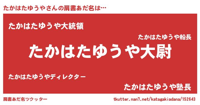 | 男性向けラノベタイトル風あだ名 | 『タカハタユウヤスレイヤー』 |