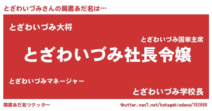 | 女子向けラノベタイトル風あだ名 | 『(仮)とざわいづみのやんごとなき事情』 |