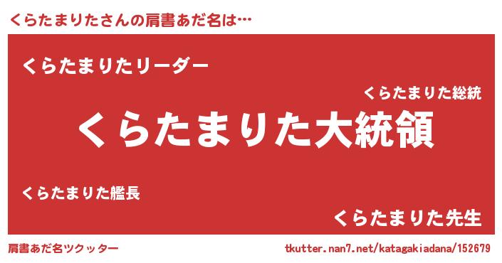 | ポケモン風あだ名 | 『クラタダネ』『ヒクラタマリタ』 |