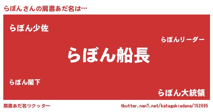 | 男性向けラノベタイトル風あだ名 | 『うちのらぼんが世界を掌握している!』 |