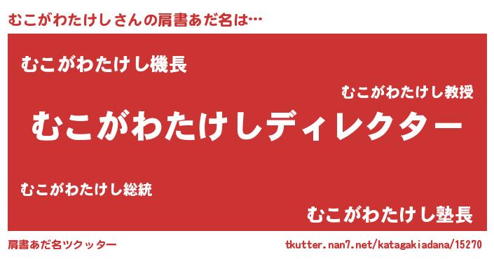 | 男性向けラノベタイトル風あだ名 | 『はたらくむこがわたけしさま!』 |