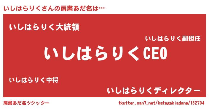 | 胡散臭い通販商品みたいなあだ名 | 『億万長者になれるブレスレット…その名も「いしはらりく」』 |