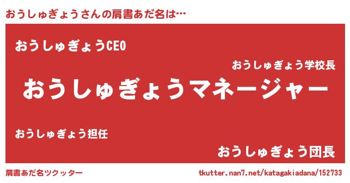 | 2回繰り返すあだ名 | 『おうおう』『ぬめぬめ』『ぼさぼさ』 |