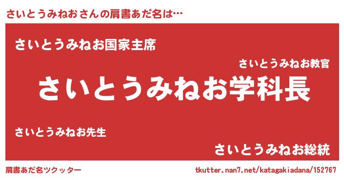 | 男性向けラノベタイトル風あだ名 | 『おまえをオタクにしてやるから、俺をさいとうみねおにしてくれ! 』 |