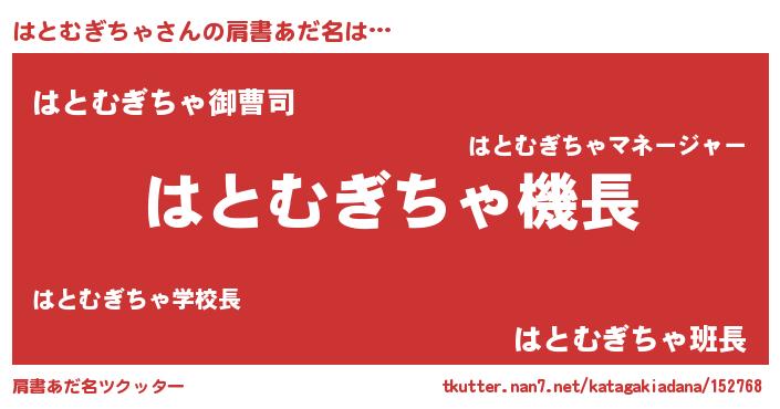 | ヘコむあだ名 | 『はともー』『はとぷりん』 |