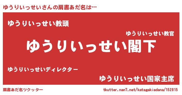 | 男性向けラノベタイトル風あだ名 | 『Re:ゆうりいっせいから始める異世界生活』 |