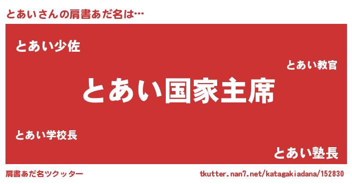 | 可愛いあだ名 | 『とあちー』『とあぷりん』 |
