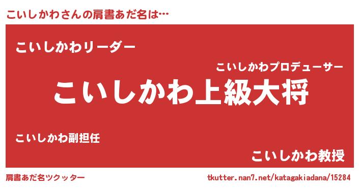 | 男性向けラノベタイトル風あだ名 | 『こいしかわ~年齢イコール彼女いない歴の魔法使い~』 |