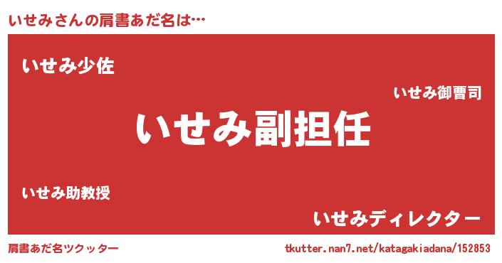 | ヘコむあだ名 | 『いせみ(震え声)』『いせにー』 |