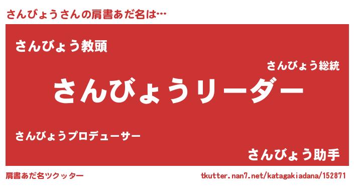 | 意味不明あだ名 | 『とにかく怪しいさんびょう』 |