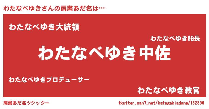| 男性向けラノベタイトル風あだ名 | 『ワタナベユキスレイヤー』 |