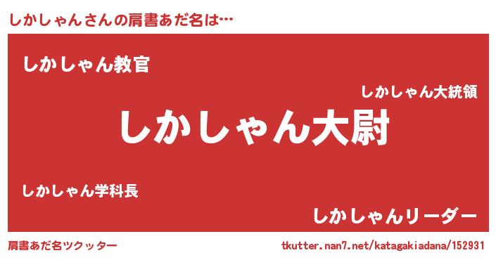 | 男性向けラノベタイトル風あだ名 | 『転生したらしかしゃんだった件』 |