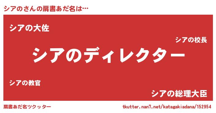 | 意味不明あだ名 | 『しいたけ科シアの属』『永久保存シアの』 |