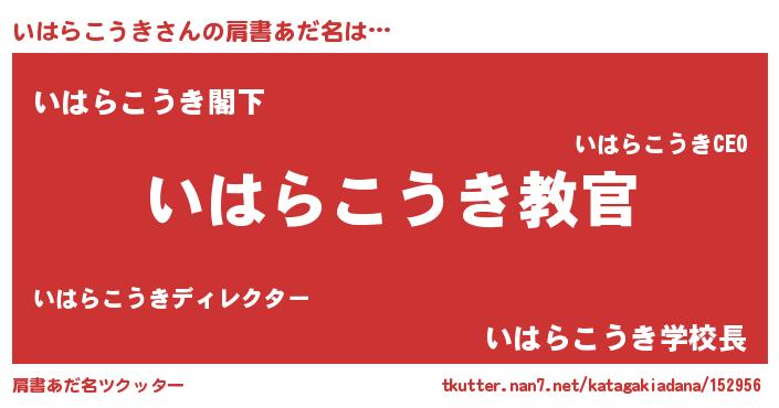 | 男性向けラノベタイトル風あだ名 | 『この素晴らしい世界にいはらこうきを!』 |