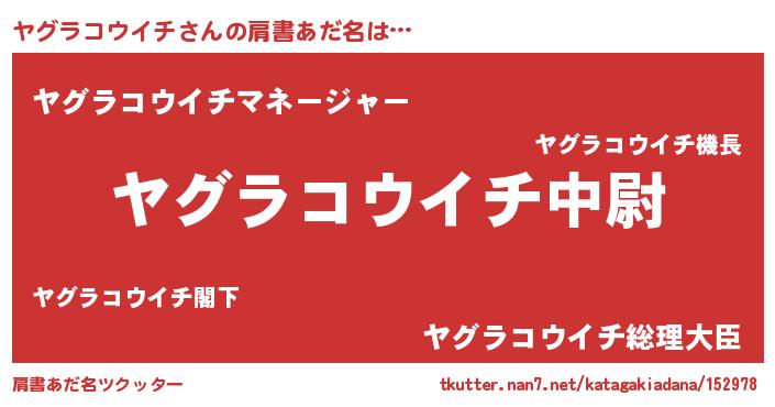 | 男性向けラノベタイトル風あだ名 | 『ヤグラコウイチ~年齢イコール彼女いない歴の魔法使い~』 |