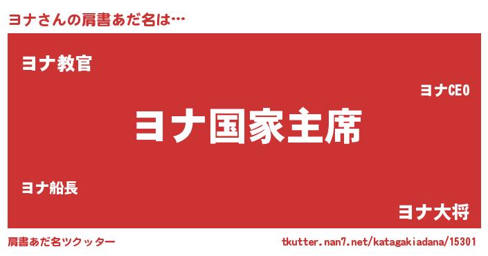 | 欧米人風あだ名 | 『ヨナクリステル』『ダレノガレヨナ』 |