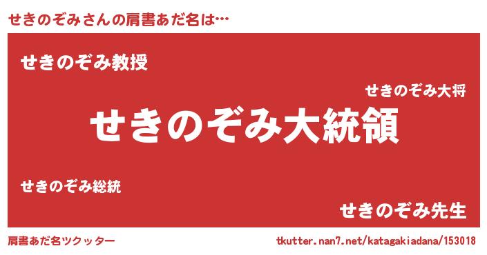 | 意味不明あだ名 | 『せきのぞみフォーエバー』 |