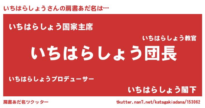 | 意味不明あだ名 | 『とにかく怪しいいちはらしょう』 |