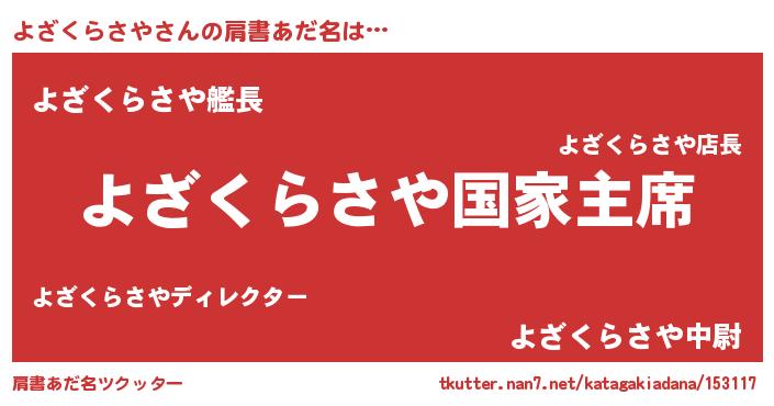 | ヘコむあだ名 | 『つくし』『よざにゅー』『よざっ子』 |