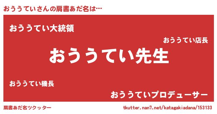 | ヒーロー風カッコイイあだ名 | 『ネオオウウテイ』『スーパーオウウテイ』 |