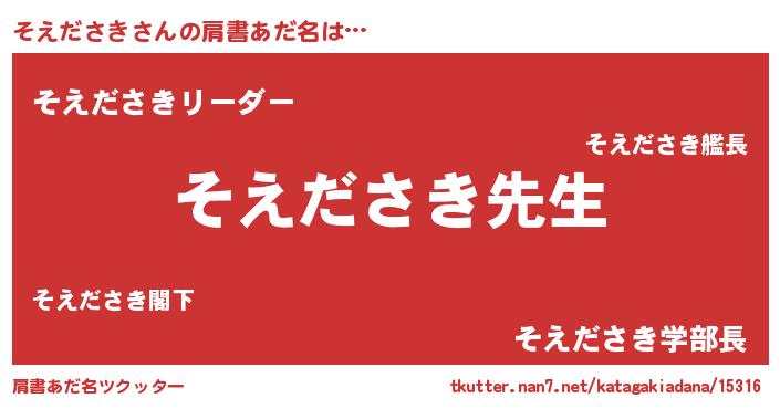 | 男性向けラノベタイトル風あだ名 | 『そえださきという概念が存在しない退屈な世界 』 |
